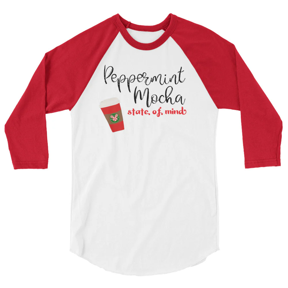 Peppermint Mocha State of Mind Holiday Coffee Raglan Tee Baseball tshirt