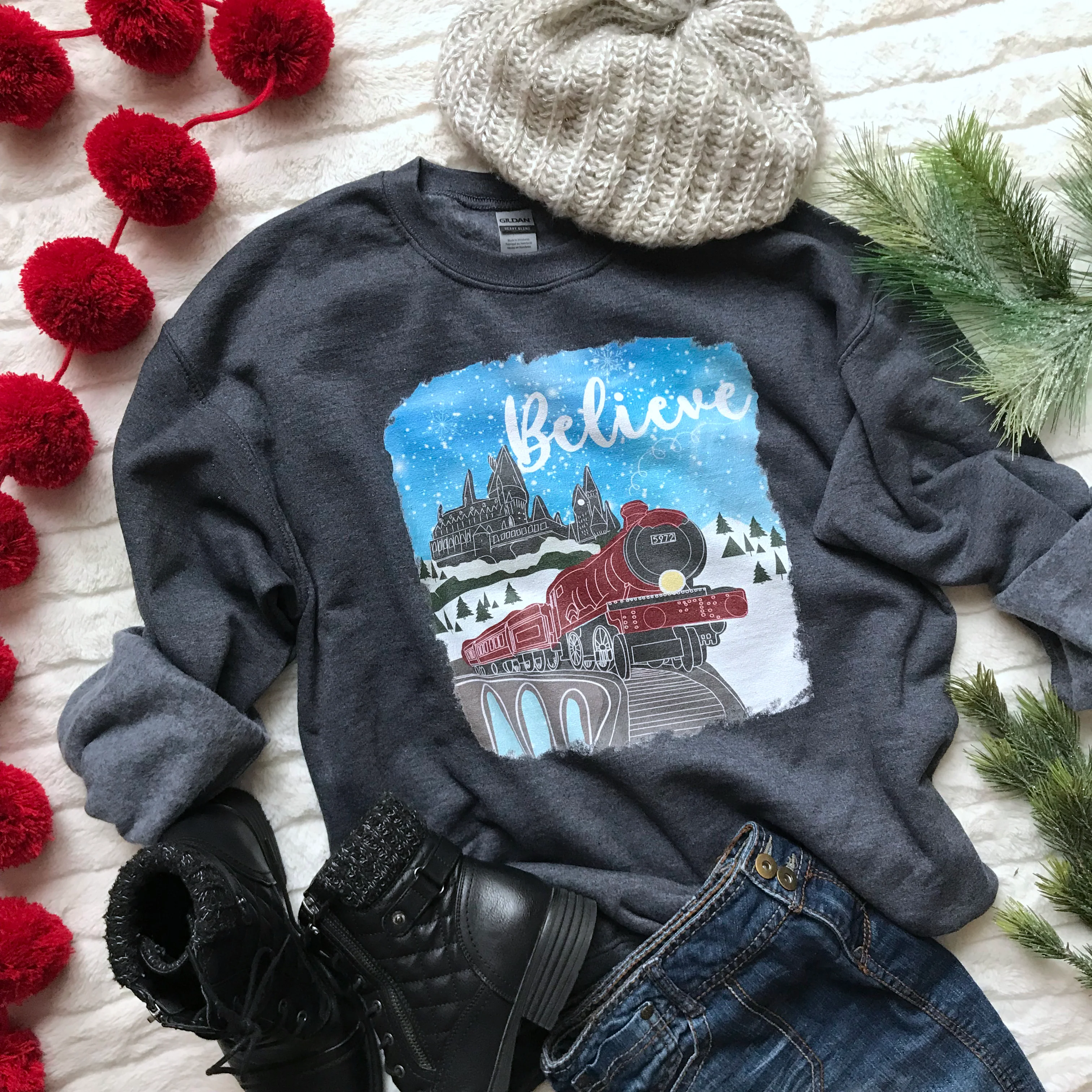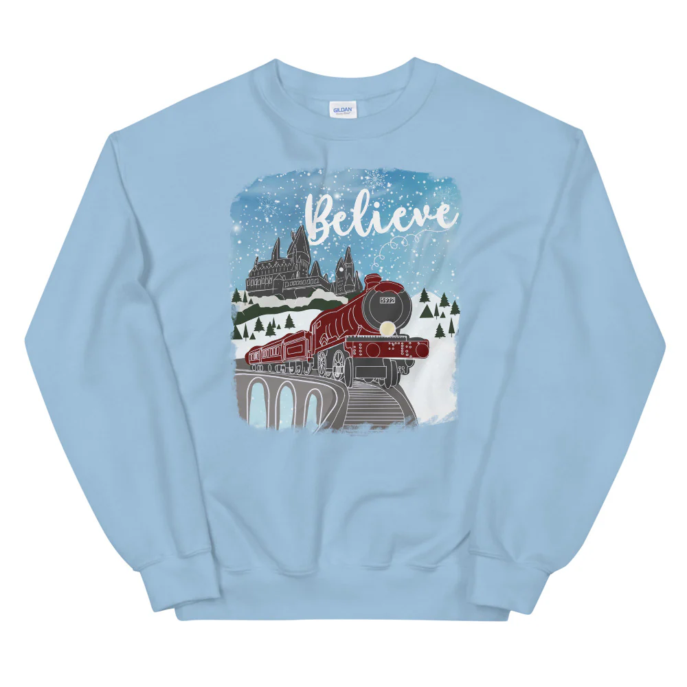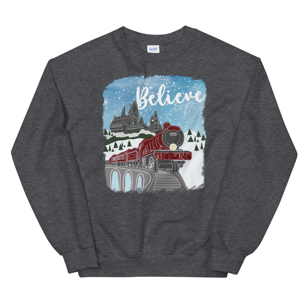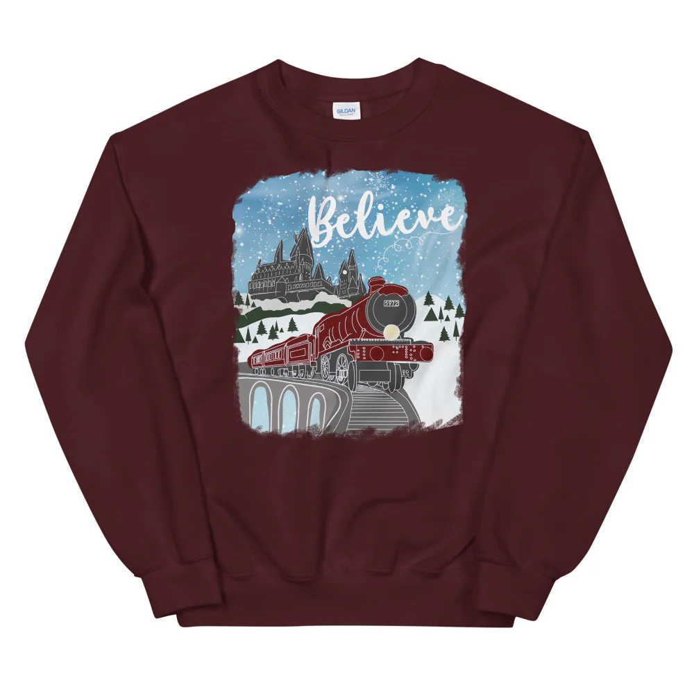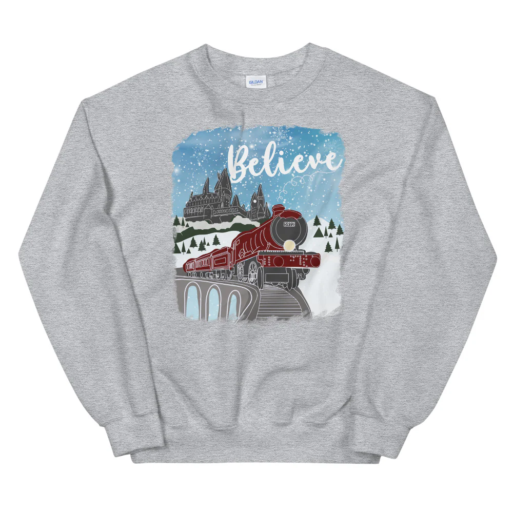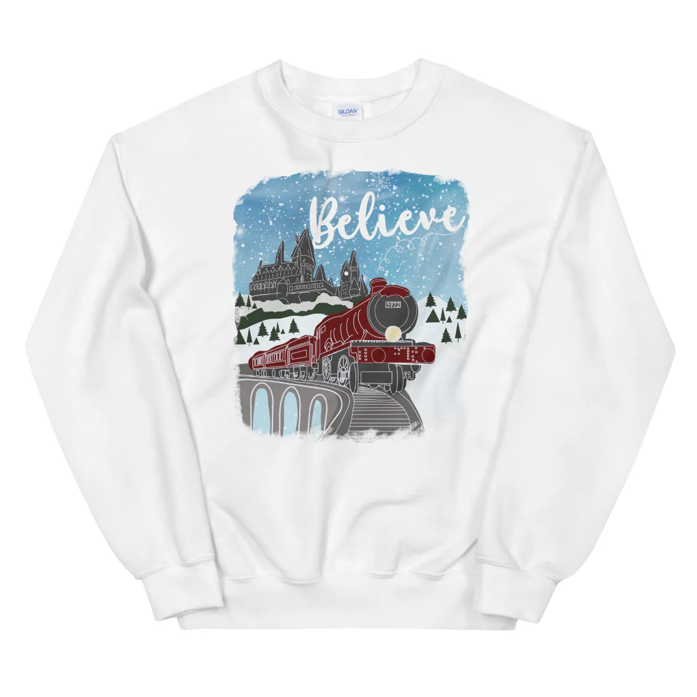 Christmas Castle and Train Believe Unisex Sweatshirt