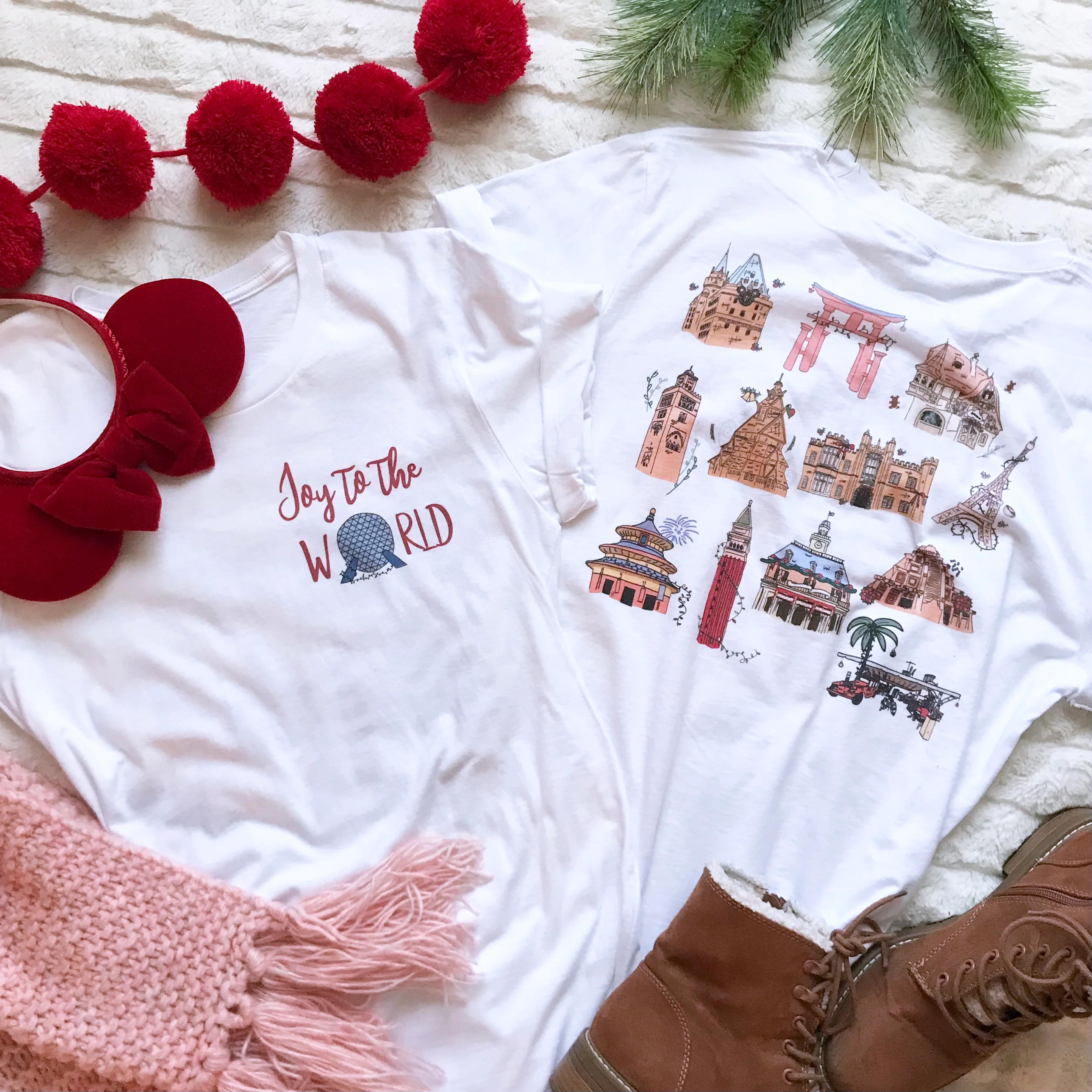 Epcot Holiday T-Shirt Joy to the World Showcase Christmas Short-Sleeve Unisex T-Shirt