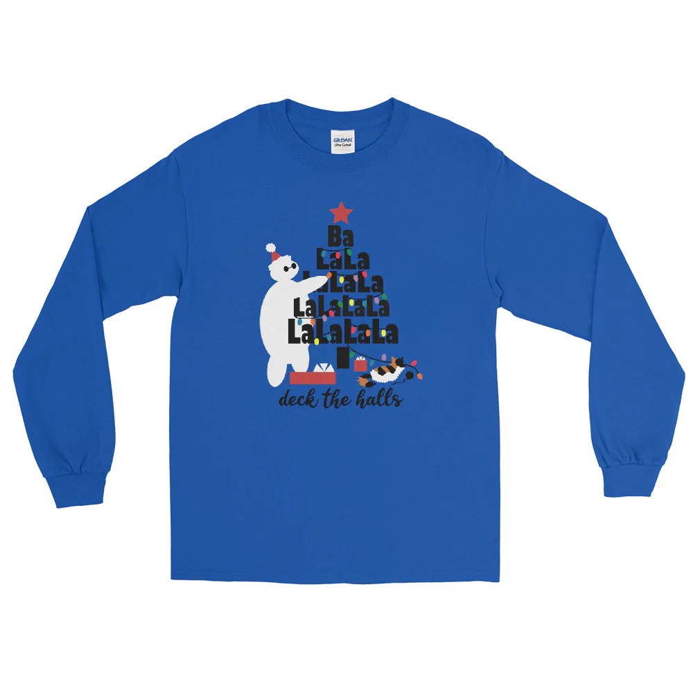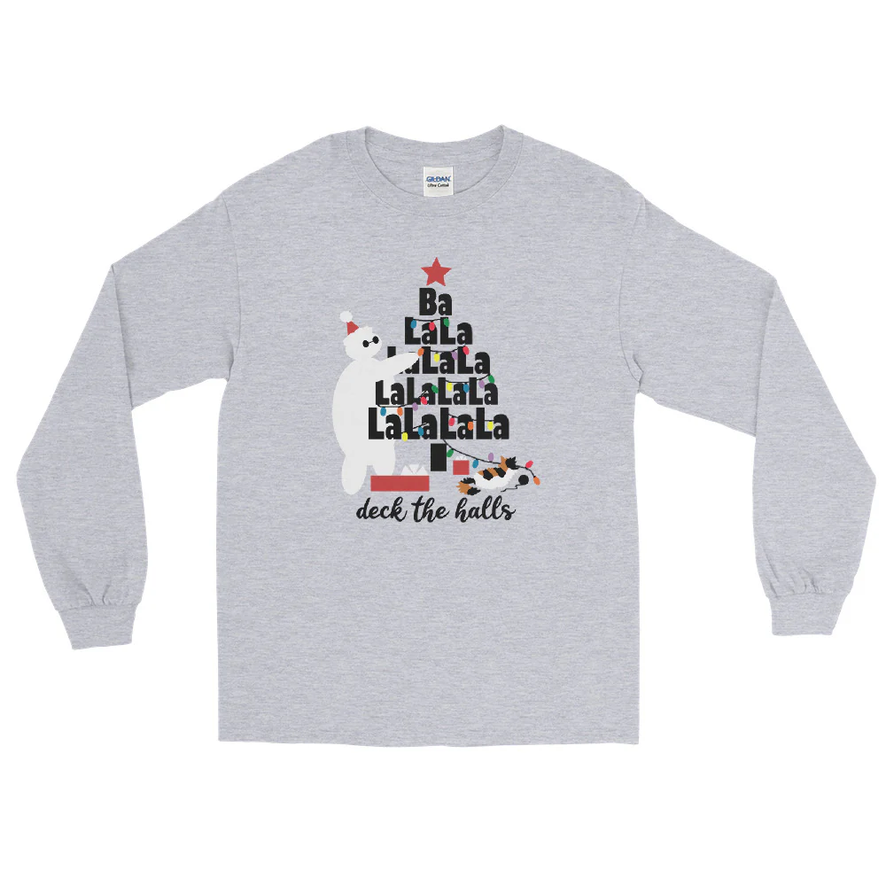 Baymax Disney Christmas Long Sleeve Christmas Tree with Furry Baby Men__ Long Sleeve Shirt