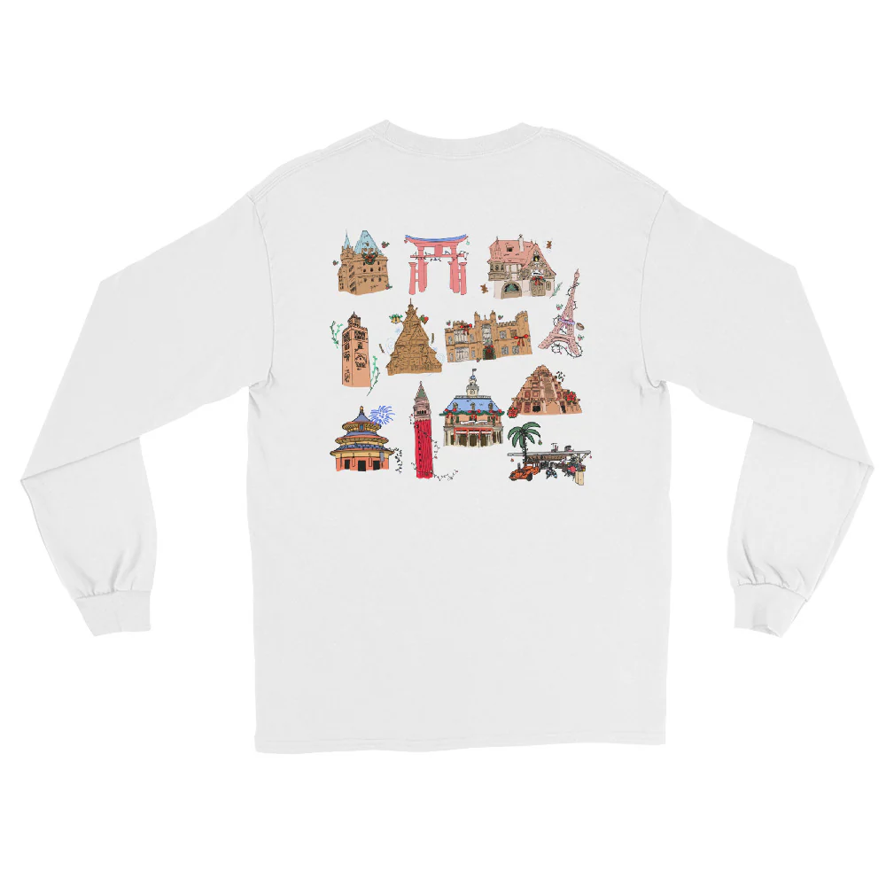 Epcot Holiday Long Sleeve Joy to the World Showcase Christmas Men__ Long Sleeve Shirt